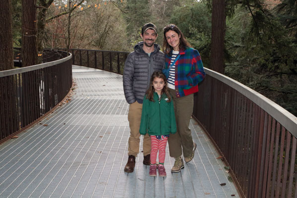 Visiting from the Montavilla neighborhood, taking a stroll on the Aerial Tree Walk, is the Bergantz family.