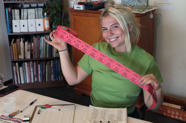 Offering raffle tickets, it’s volunteer Syd Spencer.