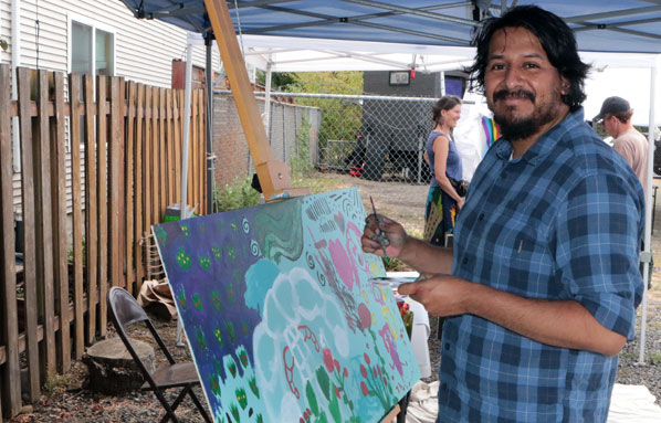 It’s outer East Portland-based art impresario Hamton Rodriguez greeting visitors at the celebration.