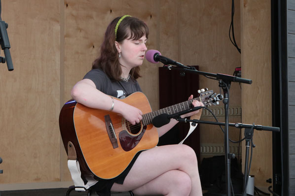 Musically entertaining on the SoundsTruck NW stage, is Cat Johnston, a Program Leader at My Voice Music.