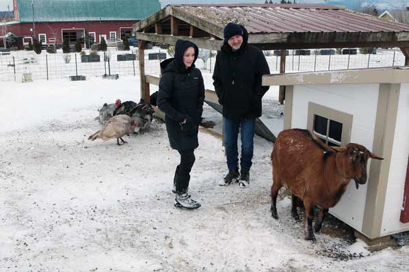 In Parkrose, at Rossi Farms, Gabrielle Rossi and Joe Rossi make sure their turkeys and goats are well fed.