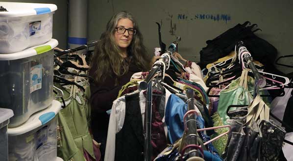 Dozens of costuming volunteers provide a professional look to their shows by making and maintaining the scores of outfits. Here, Lead Costumer Michelle Simmons looks through some of the costumes to be worn in their Holiday productions.