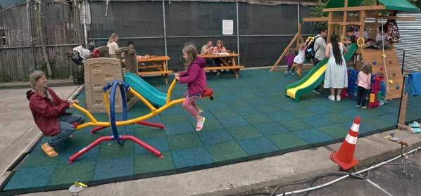 At the east end of the cart pod, kids and their parents are having fun in the new “Kids Play Area” – it’s the only food cart pod to offer such an amenity.
