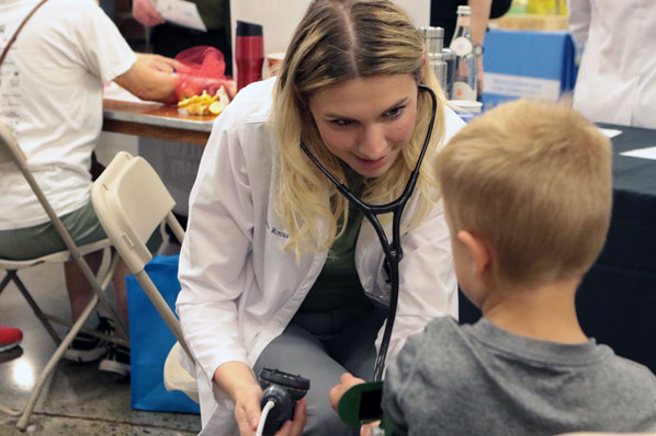 University of Western States Naturopathic Medicine student Ashley Wilfong measures the blood pressure of a young participant.