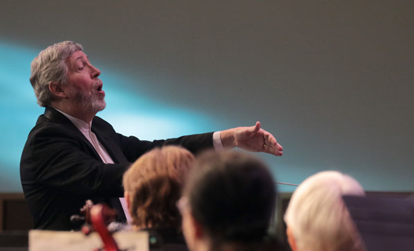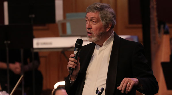Oregon Sinfonietta Conductor Dr. Donald L. Appert welcomes concertgoers to the performance.