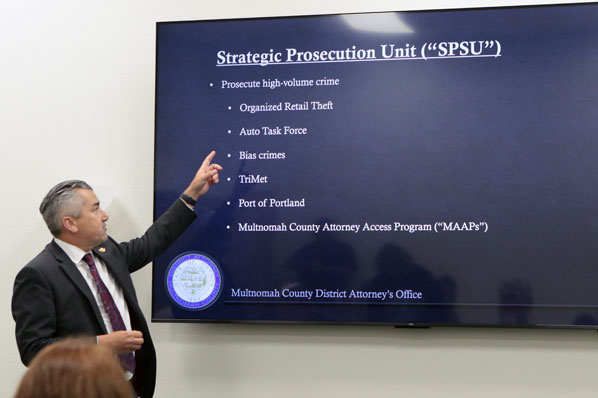 Attendees learned about the responsibilities of the Multnomah County District Attorney’s Office – prosecuting criminal cases within the county, ensuring accountability for those who violate the law, and providing support to victims of crime.