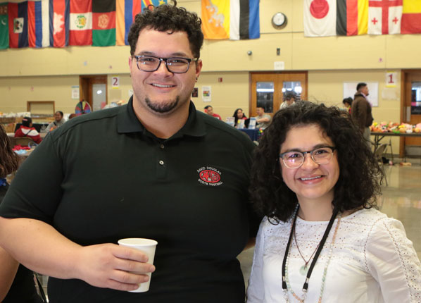 DDHS Pacific Islander Club Advisor Dylan Souders, also a football coach, stops for a photo with the District’s Director of Communications, Family, and Community Partnerships – Aidé Valerio-Juarez.