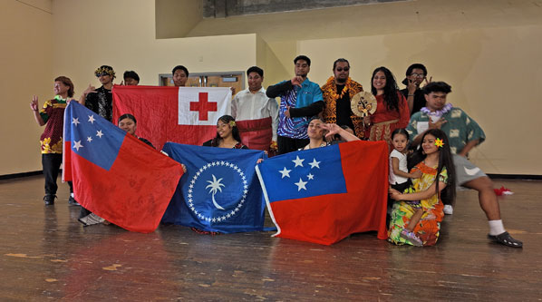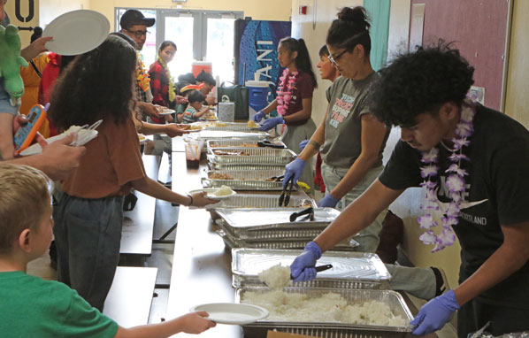 Volunteers serve supper to guests who enjoy culturally-significant traditional foods of Pacific Islander nations.