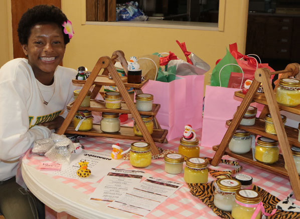 In the Mill Park neighborhood, at the Division Midway Alliance Neighborhood Prosperity Initiative District’s Holiday Bazaar, it’s Philicia Robinson showing and selling her line of goods from her company, Phlavours XXII.