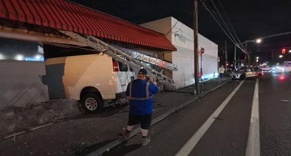 “This was a hit-and-run [accident] that occurred in the intersection of NE 102nd Avenue and Glisan Street,” later confirmed PPB Public Information Officer Eric Zajac. “Witness accounts state the van ran the [red] light and collided with the sedan. The driver of the van walked away from the accident, but was found a few blocks away by the officers responding to the accident.”