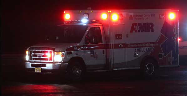 Before Portland Police Bureau officers cordon off the incident scene, an ambulance takes a seriously injured woman to a local hospital.