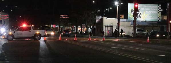 Along SE Powell Boulevard, at the intersection of 84th Avenue – that’s the dividing line between the Lents and Powellhurst-Gilbert neighborhoods – a woman crossing the street was hit by a passing vehicle after dark on Tuesday evening, February 4.
