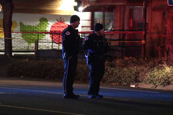 Waiting for investigators, officers close off SE Powell Boulevard at 82nd Avenue of Roses.