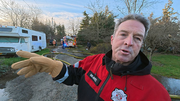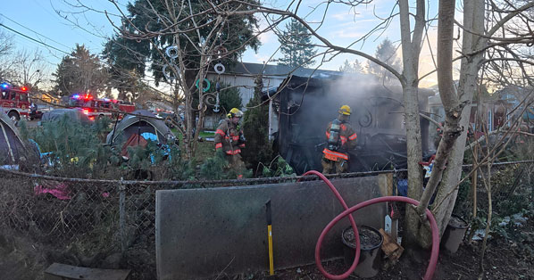 Providing “mutual aid” to PF&R crews, both of the Clackamas County Fire District 3 Engine and Ladder Truck Companies responded to the call.