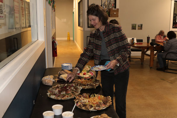 Serving herself food, it’s Felice Mueller — a Pleasant Valley Neighborhood Association Board Member. “We’re working to start a NET in our own neighborhood,” she says.