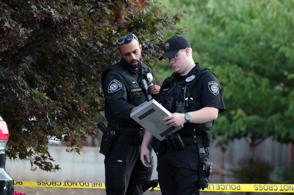 At Pat Pfeifer Park in Gresham, officers arrive to investigate a shooting.