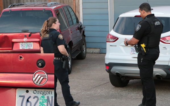 Both a Portland Police and GPD officer find the reported Mercury SUV – with bullet holes in it.