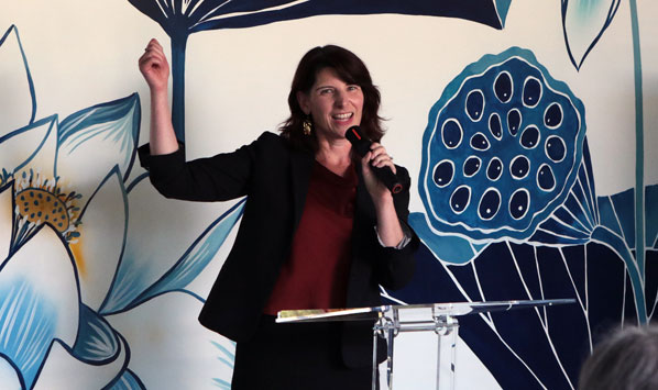 She told the those gathered that the new $31.2 million project, 73Foster, will provide 64 units of “affordable housing”, including 22 “Permanent Supportive Housing” (PSH) units. The latter combines affordable housing with voluntary and comprehensive support services, to help individuals and families experiencing chronic homelessness to maintain stable housing.