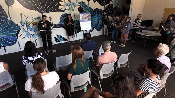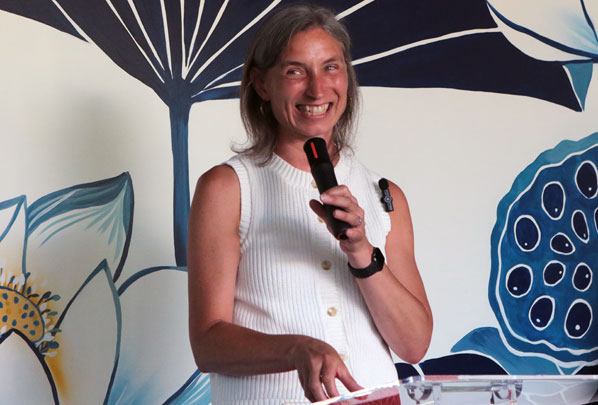 Welcoming everyone to the groundbreaking ceremony for 73Foster – in 72Foster – is Margaret Salazar, CEO, REACH Community Development Corporation.