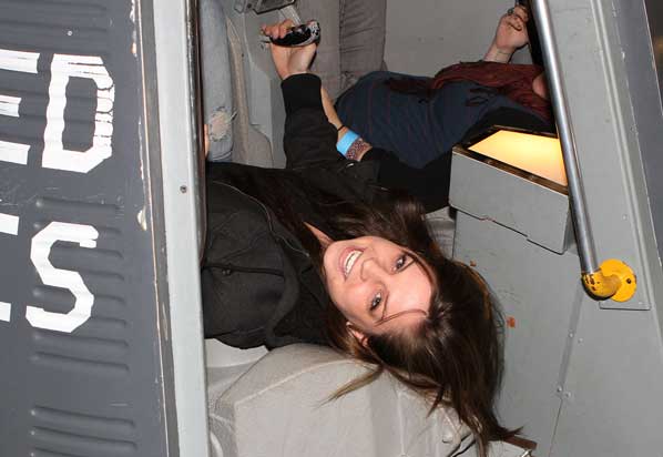 Merisa Whide envisions herself blasting off into outer space, as she snuggles into the space capsule display.