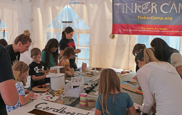 During the Oregon Museum of Science and Industry’s “Oregon Science Festival”, visitors of all ages try their hand making Cardboard Creations at the Tinker Camp exhibit.