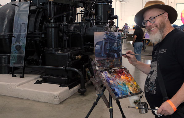 In the OMSI Turbine Hall, it’s painter Simran Gleason of ‘Slow Camera Paparazzi’ at work.