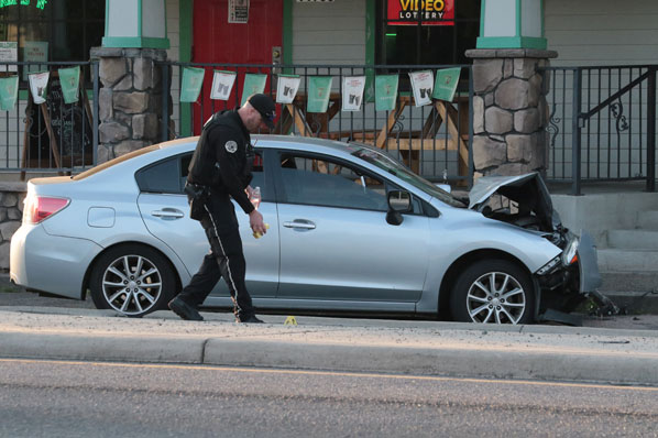 Puzzlingly, the Subaru Impreza ended up just east of SE 118th Avenue, in front of Whelan’s Irish Pub – jammed in between the sidewalk and the bike lane curb – facing eastbound in the westbound lanes of SE Division Street.