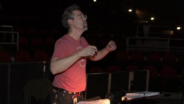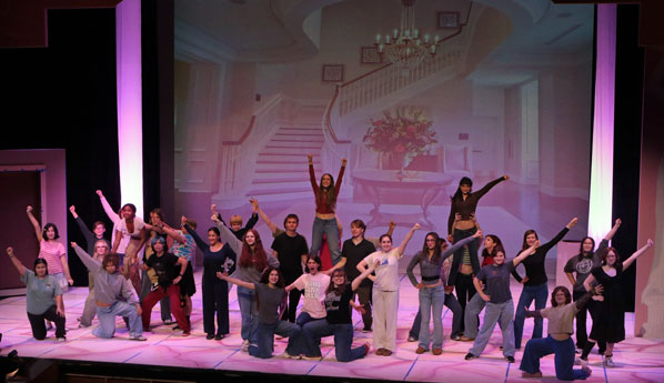 DDHS Theater Instructor Michael Givler coaches students rehearsing a musical number.