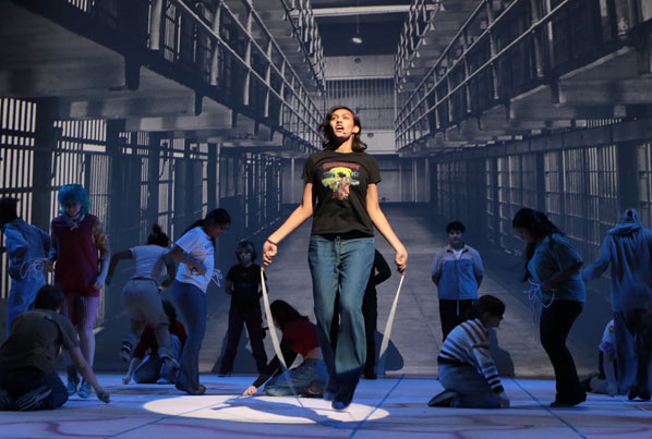 In this fantasy scene song that starts off Act II – workout guru Brooke Windham (played by Anjali Evers) is in jail for a crime she didn’t commit – but nonetheless she encourages inmates to exercise with her, in a live “music video” entitled “Whipped into Shape”.