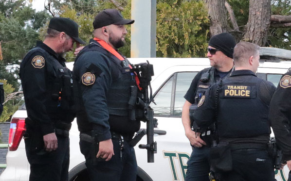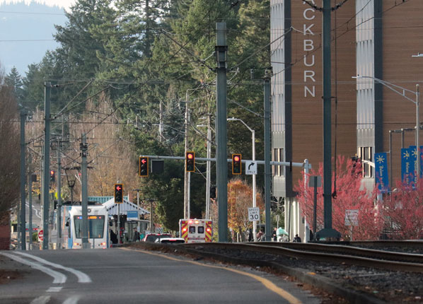At 12:56 p.m. the Portland Bureau of Emergency Communications dispatched Multnomah County Sheriff’s Officers – MCSO leads the multi-agency TriMet Transit Police Division – along with numerous Portland Police Bureau (PPB) officers to the incident. All of them wre directed to SE 122nd Avenue at East Burnside Street.