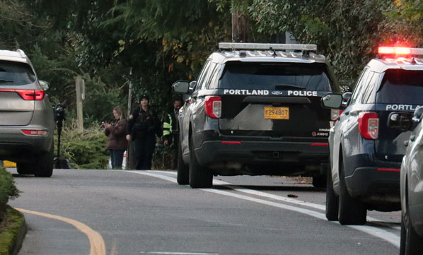 Officers continue to arrive at the intersection of SE 131st Court and East Burnside Street.