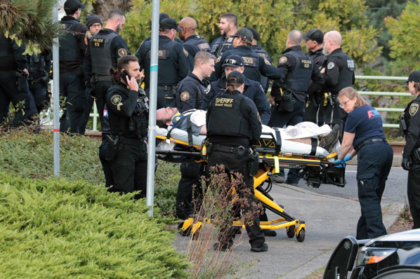 This incident began on the sunny early afternoon of Thursday, November 20 with a ruckus caused by a man at or near the TriMet MAX Light Rail Station. The man reportedly threatened two Transit Security Guards with a weapon.