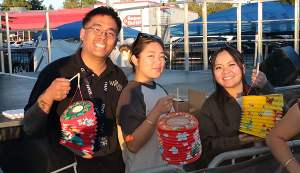Helping pass out some of the 500 lanterns distributed free for the “Lantern Parade” are Executive Director Nhan Danh, and co-founders Sydney Lau and Lisa Mai.