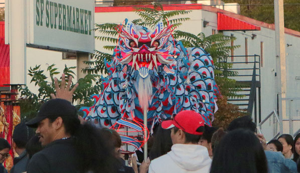 Some just watch, but hundreds join the “Lantern Parade” behind the White Lotus Dragon, as it dances through the festival grounds.