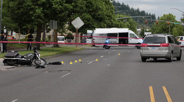 Portland Police Bureau (PPB) East Precinct officers who were dispatched to this “Accident-with-Injury” at 2:03 p.m. arrived to find the adult male motorcyclist suffering from serious injuries.