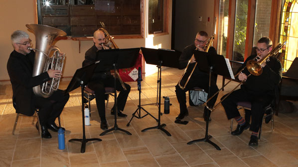 -1 Before the Sunnyside Symphony Orchestra’s Christmas Concert, the Sunnyside Low Brass Quartet entertain in the foyer, playing Christmas Carol melodies.