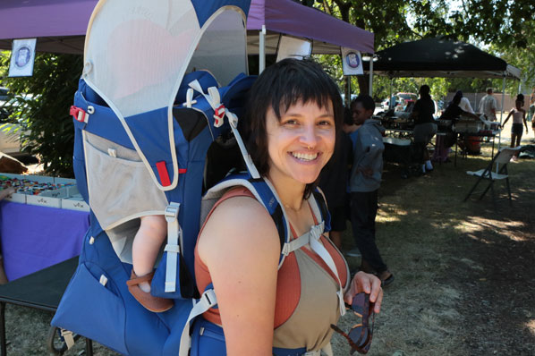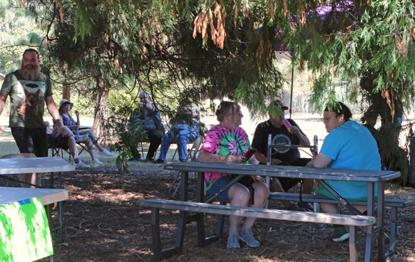 On this warm, Saturday afternoon, Powellhurst-Gilbert neighbors are chillin’ in the shade of large firs in Gilbert HydroPark as the block party gets underway.