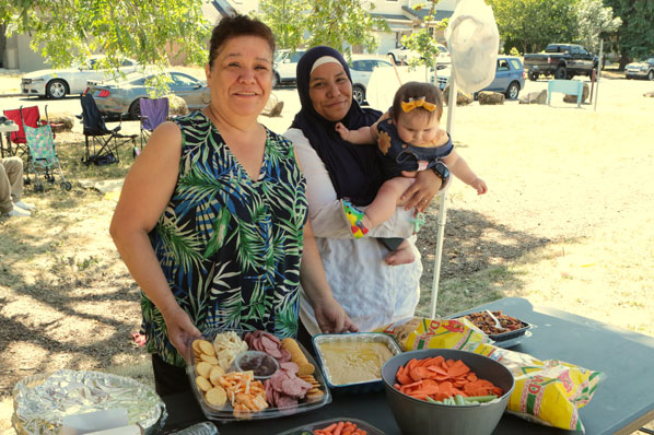 While the caterer – yes, this party was catered – was setting up, neighbors and friends gathered in the shade to chat. Others took advantage of the “Day One Tech” activity booth. And, many grazed on relishes, chips and snacks that were brought in “potluck style” by participants.
