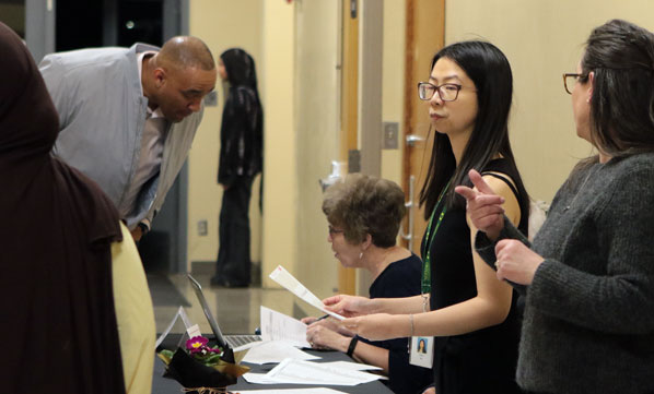 Guests check in at the January 23 fundraising dinner and preview for the David Douglas High School Career and Technical Education Center building.
