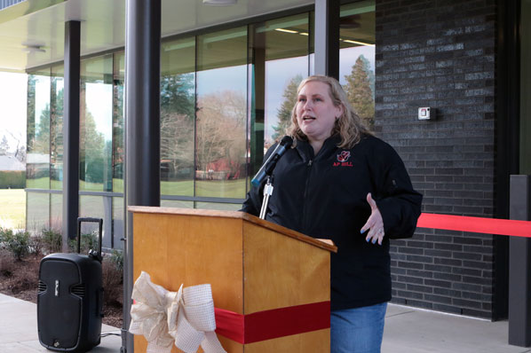 DDHS Assistant Principal of CTE and the project’s planning and construction leader, Valoree Hill tells those assembled, “The Career Center is about forward thinking; it’s about having our kids truly prepared for their next step.”