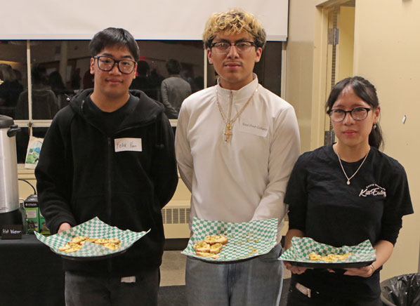 Serving hors d’oeuvres at the dinner gala are DDHS students Felix, Saul, and Phoung.