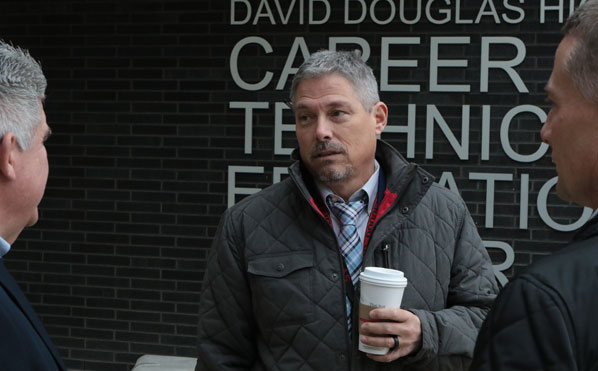 David Douglas School District Superintendent Ken Richardson talks with guests before the opening ceremony.