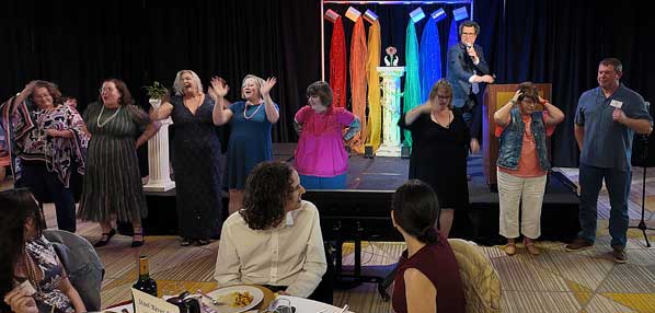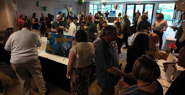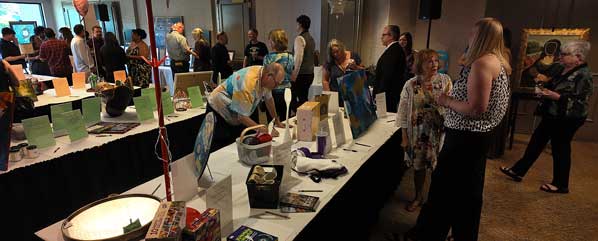 The foyer of this Portland Airport Sheraton hotel ballroom vibrates with excitement as guests try to outbid one another in the Silent Auction.