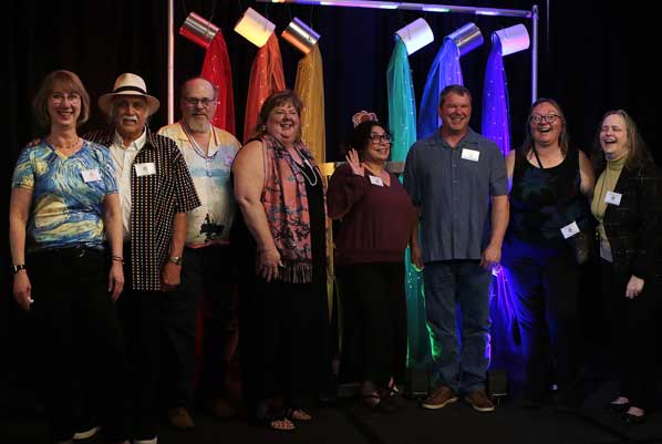 Here, on stage, are members of the organizing committee: PEF Board Chair Londa Sundin, Auction Administrator Vern Sundin, PEF Board Member Auction Committee Kevin Pappin, Auction Chairperson Kari Gothro, volunteer Monet Hampson, and Auction Committee members Chris Sellon, Kris Brown, Colleen Grant.
