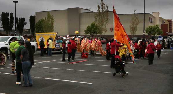 In a parking lot at Eastport Plaza, participants in the 19th Annual 82nd Avenue of Roses Parade begin to assemble.
