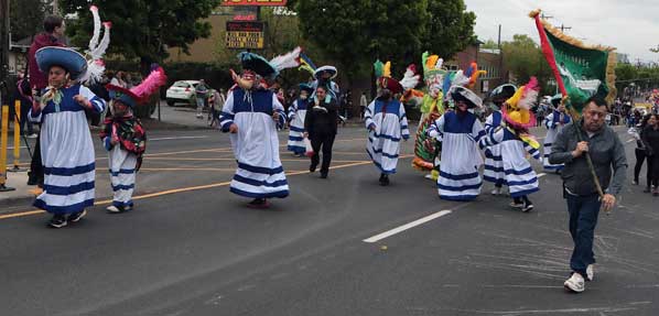 The colorful Comparsa Orgullo Morelense Cemiac dancers continue to be one of the groups that enliven the parade.