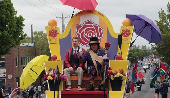 The Portland Rose Festival Association float presents President Jeremy Emerson, and Clown Prince Angel Ocasio.