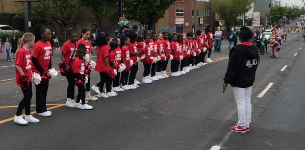 Nary a raindrop fell from the overcast sky on Saturday morning, April 26th, as the 19th Annual 82nd Avenue of Roses Parade kept its two-decade “no rain” streak intact. The parade stepped off from Eastport Plaza right on time at 9:30 a.m., and headed north to the South Tabor neighborhood.