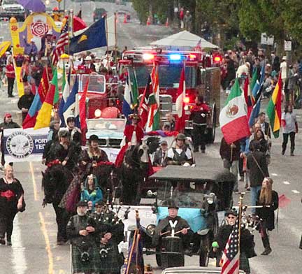 See folks having fun – as the rain stopped just as the 2019 82nd Avenue of Roses Parade began, in outer East Portland …