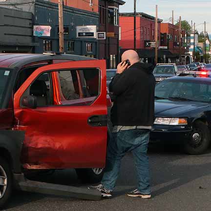 See how this two-vehicle collision in outer East Portland put cracks the concrete-block wall of a commercial structure…